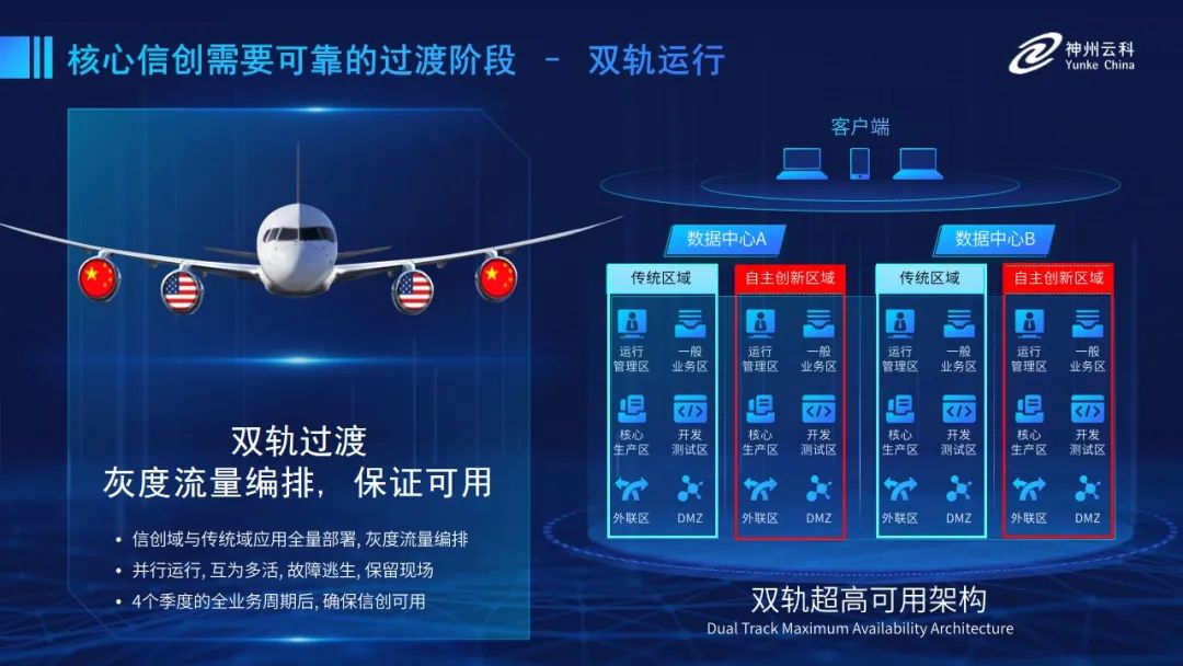 为帮助客户更好地应对数字经济时代对应用可持续性的高要求,实现信创与数字化兼得,九游ninegame推出了双轨超高可用架构。双轨超高可用架构在双活数据中心的分区调度基础上,增加信创域和非信创域的分域调度,实行信创域与传统域应用全量部署,使双中心运营变为双中心四区域并行运行,互为多活,将传统架构变为分区分域协同的多活双轨超高可用架构。帮助客户在新架构下,保障“信创”的同时解决性能瓶颈,提升稳定性,保证应用可持续性,最终实现信创区域和非信创区域的平滑过渡,完成国产化替代目标。”